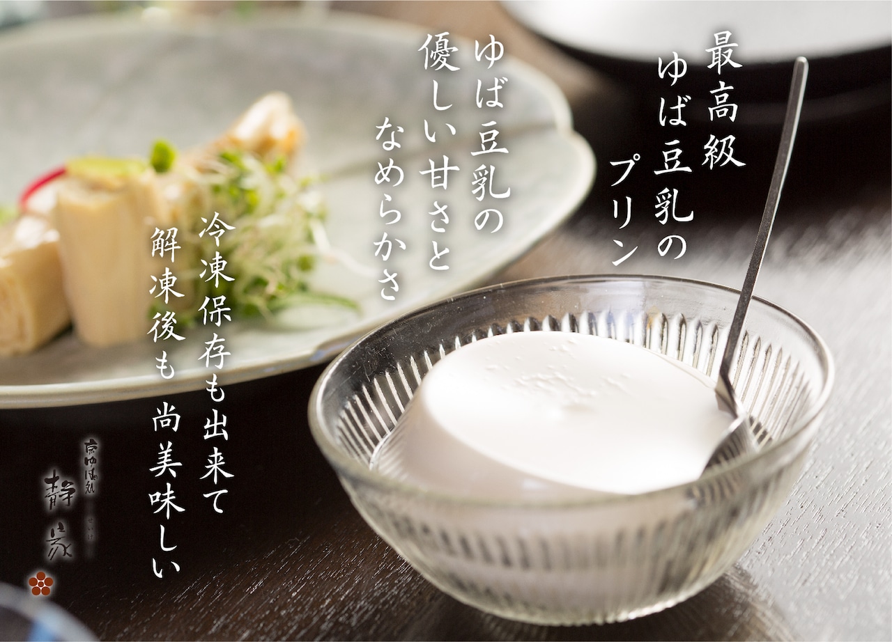 汲み上げ一番ゆば、生ゆば、豆乳がゆ、竹ゆば佃煮に豆乳プリン。
