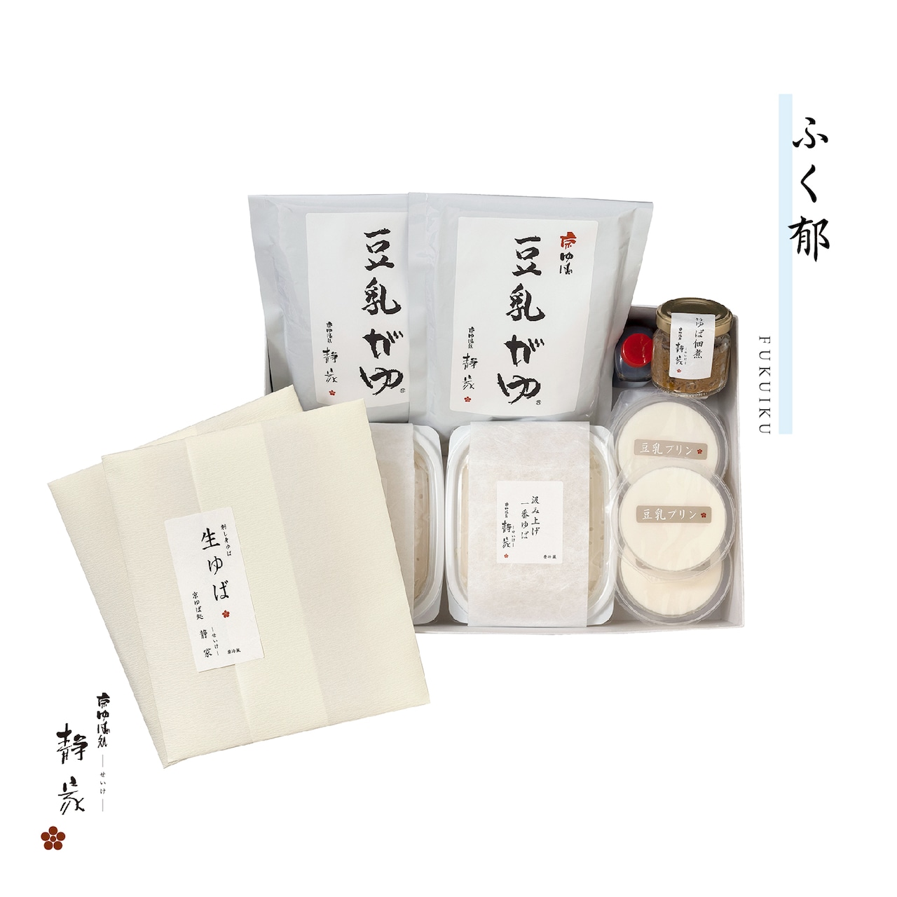 人気の京ゆば豆乳がゆが入った定番セットは ふく郁のみ。大切な方への贈り物にどうぞ。