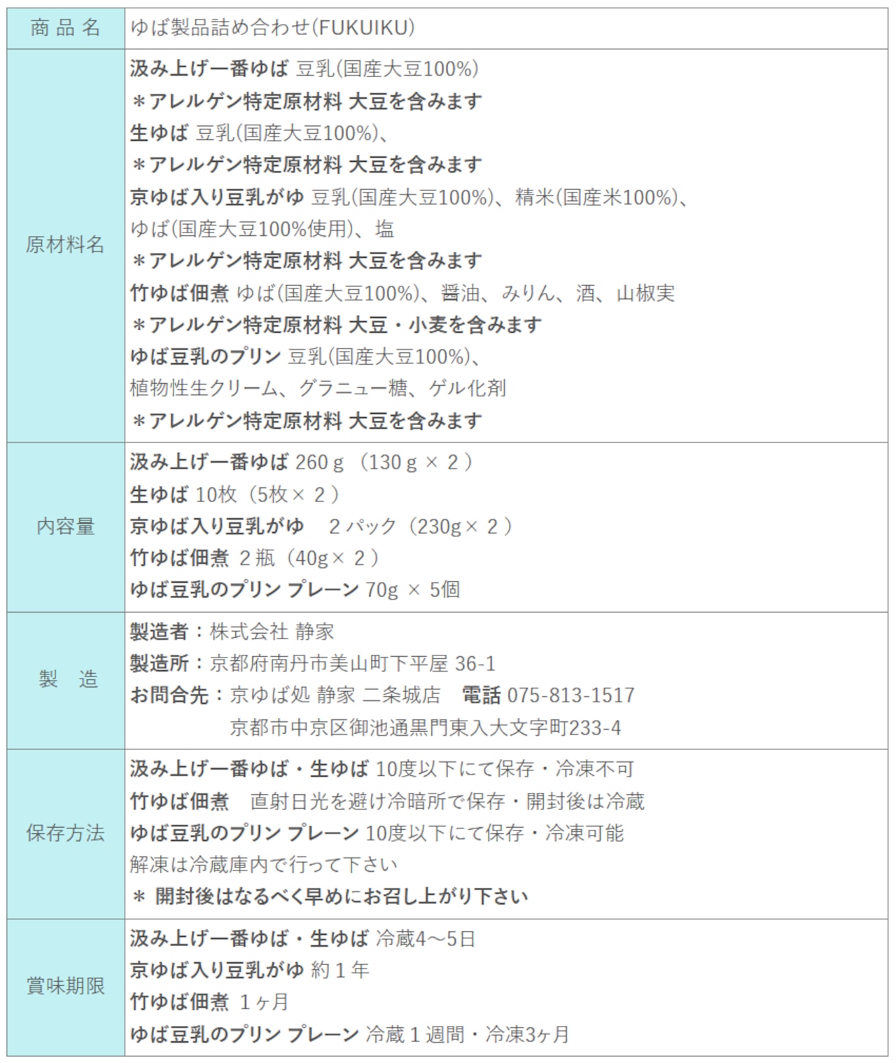 静家の人気商品を一つに お詰合せました。国産大豆のみを使用した特性豆乳で丁寧に作る自家製ゆば。味わいの豊かさと身体への優しさがつまっています。