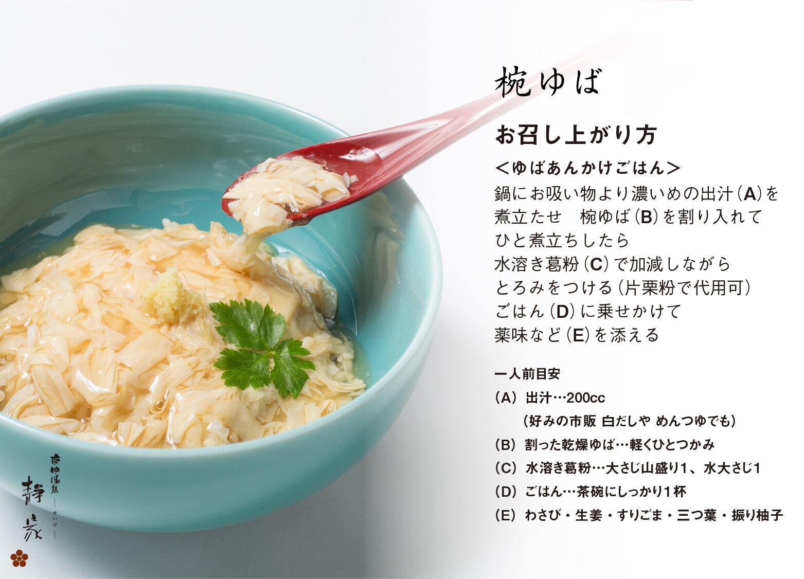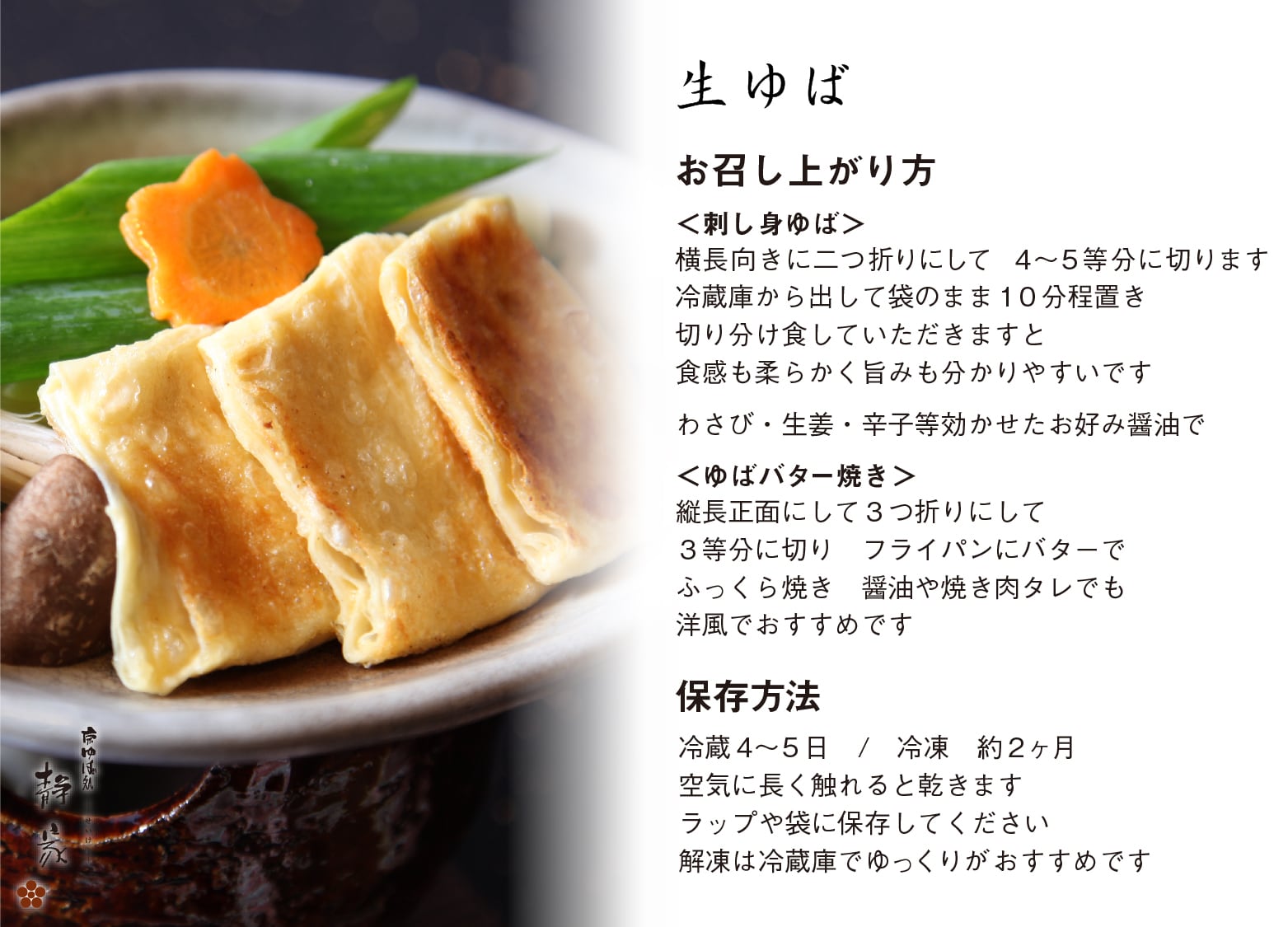 静家自慢の「汲み上げ一番ゆば」と「生ゆば」に加え、